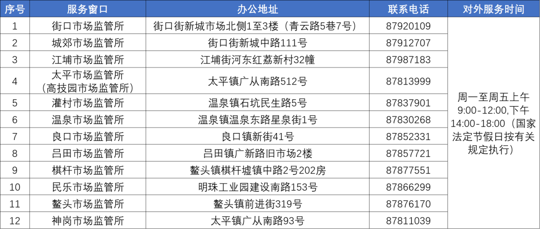 广州市从化区市场监督管理局民乐市场监督管理所窗口